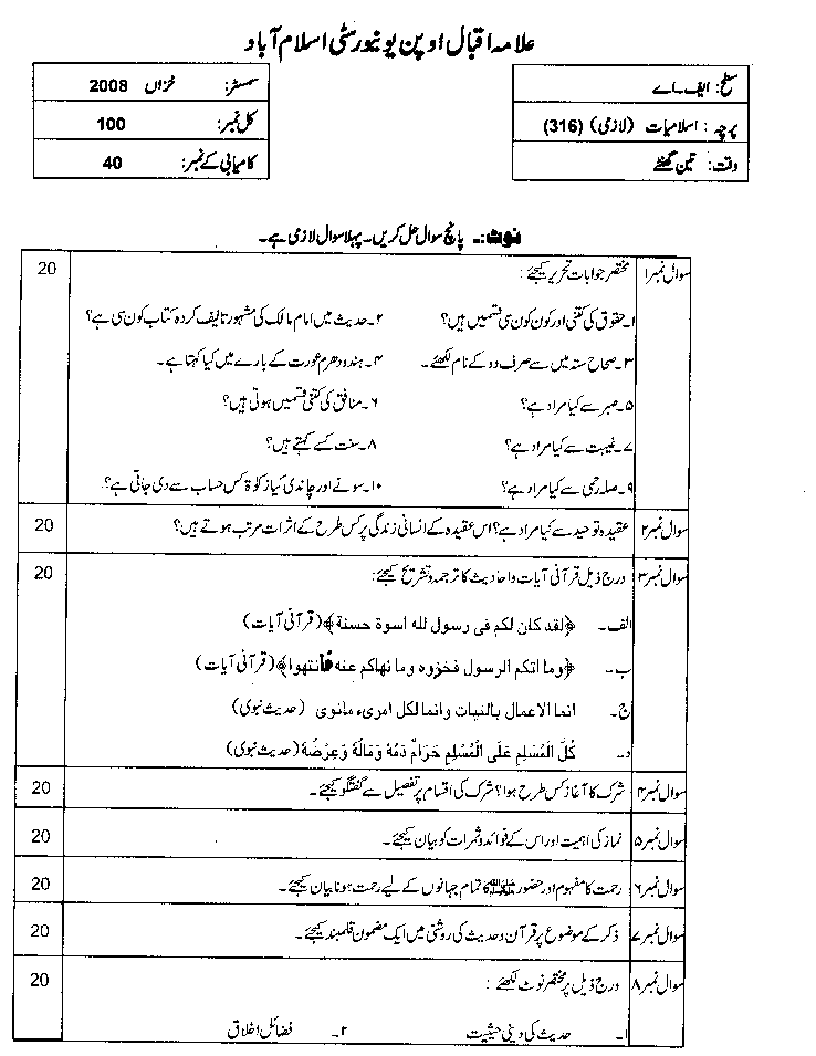 316 Islamiat Lazmi